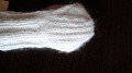 pradedam: 5 eil. ripsu, 5 eil. gerom. Tada vėl ripsu, bet tik 2 eil. Ir apie 25 eil. gerom. Tada siaurinimas. Aš siaurinau taip: ant vieno virbalo yra 20 akių, sumezgus visas akis po dvi, ant virbalo turi likt 10 akių. Po to, 4 eilutes mezgiau paprastai. Jas numezgus ir vėl siaurinau ir taip dariau kol liko kelios akys. Tada tiesiog pertraukiau siūlą ir viskas.