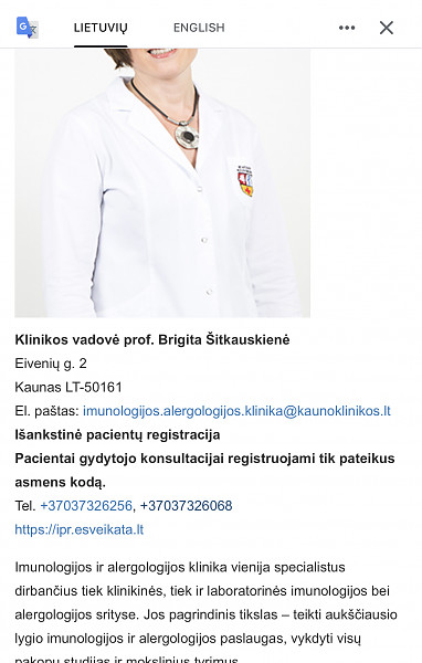 Dariausi, nemokamai su siuntimu-Kauno klinikose pas imunologe-Sitkauskiene.