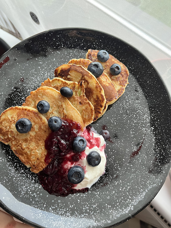 Varskes-cukiniju-obuoliu blyneliai su graikiniu ir avieciu uogiene
