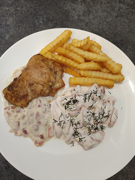 Antiena su šalotu padažu ir salotomis