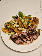 Ir tada papjaustom antiena tokiom riekelem ir patiekiam, turi but rusva mesa dar viduj, jei bus per raudona, galima minutei perpjautus gabalelius pakepint keptuvej siltoj dar, iki tol kol atrodys pagal jusu skoni.